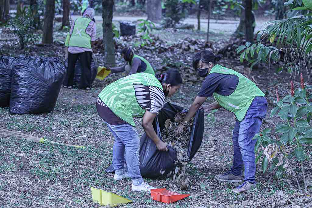 (Beritadaerah- Jakarta) Sejumlah petugas membersihkan daun-daun yang berserakan di area Gelora Bung Karno, Senayan, Jakarta, (5/9/2023). Menyambut penyelenggaraan KTT Ke-43 ASEAN pada 5-7 September 2023 dilakukan pembersihan secara menyeluruh di kawasan Gelora Bung Karno. Foto: Infopublik